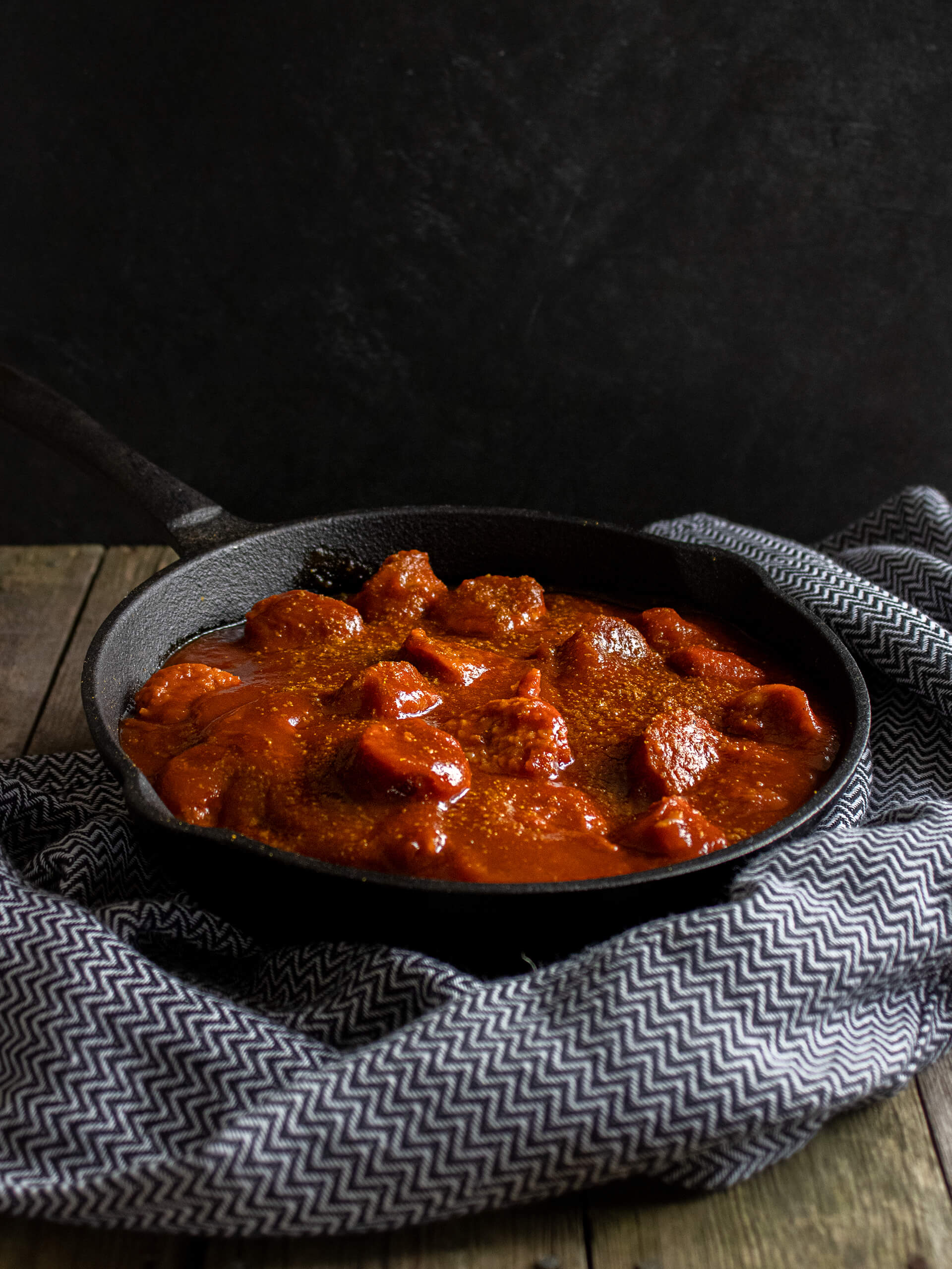 Voordat we naar het recept gaan is het nog wel leuk om te weten waar de curryworst nou precies vandaan komt. Zoals bij de meeste verhalen over uitvindingen op culinair gebied, wordt ook de oorsprong van de curryworst betwist. Het verhaal wat ik ken is dat op een dag in Berlijn in 1949 een Duitse vrouw genaamd Herta Heuwer op zoek ging naar een nieuwe manier om haar ellendige naoorlogse dieet op te vrolijken. Door op een handig manier handel te drijven met Britse soldaten, kon ze wat ketchup en kerriepoeder bemachtigen, die ze vervolgens mengde met verse paprika en wat kruiden. De saus goot ze over een gebakken en in plakjes gesneden worst en – voila – de curryworst was geboren.